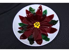 Beautiful hand made artisan fused glass decorative piece. Perfect addition to any home. Handmade Fused glass pointsettia plate.