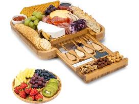 Learn how to make beautiful boards using this how to book and premium bamboo cheese board. This is a charcuterie platter and serving tray with steel cutlery & serving utensils. It is 13x13x2.