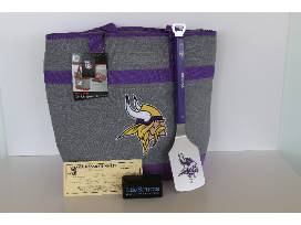 Score big with this fan-favorite grilling BBQ Spatual tool. - Stainless steel blade and bottle opener.- Laser-cut with the Viking team logo.- Composite handle in team colors. Package includes NFL Vikings Coleman collapsable cooler, $15.00 Von Hanson's Meat GC, 2 collapsible Vikings chairs and a Blue Toothspeaker and a craft brew variety 4 pack.