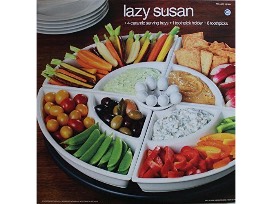 This basket is perfect for a party with Lazy Susan Serving Tray, 2 bottles of wine, gourmet sausage and crackers, chocolates, carrot cake bars, and decorative placemats. Valued at $125