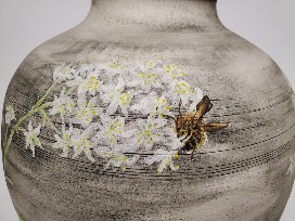 Lee Stuurmans & Jazmine Penelope Collaborative Lidded Vessel - Death Camas and Death Camas Miner Bee (Toxicoscordion venenosum and Andrena astragali)
