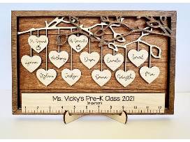 Get a one-of-a-kind handmade wooden sign for your home! Betty Guan of SerendiBetty Custom Handcrafts will make you a special wooden wall hanging with your choice of saying or name(s). Your choice of custom "Mom" puzzle, hanging hearts display, or classroom hanging hearts for your favorite educator (maximum of 12 names). Comes with wooden stand. Check out some of her custom artwork at instagram.com/serendibetty