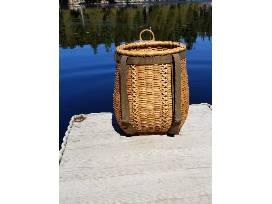 This basket is made in the Adirondacks by an experienced craftsman who pounds and strips the material from the Black Ash tree. Once the materials are prepared they are then woven together to create one-of-a-kind items. This particular basket has a twist in the ash to create the artistic pattern found on the front of the basket.