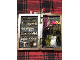 Included in the bundle: Trout Power hat, 2 buffs, tee-shirt hoodie, Orvis Bug-Out Fly Fishing backpack, Orvis Matt Patterson cooler, Trout illustration with rustic white pine frame, Yeti 2002 tumbler, fly box with custom trout flies all tied by members of Trout Power.