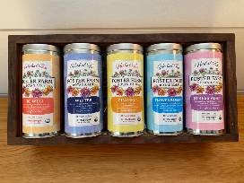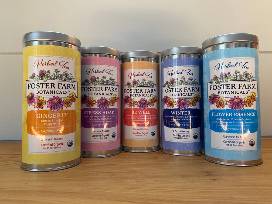 Five organic herbal tea blends grown by Foster Farm Botanicals in E.Calais, VT.