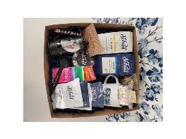Treat yourself to the finer things in life with this Tea Towel, artisan jams, and basket of coffee essentials from Schuil Coffee. Start your day with something sweet with artisan jams from Cellar Door Preserves. These small batch preserves made from Michigan fruit are vegan, gluten free, and contain about 1/2 the sugar compared to most other jam. We've included some of our fan favorites - Blackberry Jam with Lime, Peach Jam with Brown Sugar, and Cocktail Cherries. Get brewing with 2 bags of Schuil coffee, a 3 cup french press, a Schuil coffee mug, Stash Tea bags, Monica's cookie chocolate covered espresso beans, Northwest biscotti, Treat House jumbo rice Krispie Treat, and a $30 gift card! Also, included is a hand printed cotton tea towel is printed by artist Meredith Host. Perfect for everyday use in your kitchen or for your fancy tea parties.