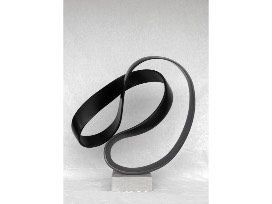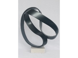 Love of nature and her extensive floral design background have gifted Mary Sebastian with an intensified relationship with nature. She has been working with natural elements since she was a child, and her experience is evident. For Mary Sebastian, less is more. She accentuates the innate properties of her chosen materials, exposing organic balance and movement. Both architectural and organic, her work is bold and dramatic, yet unmistakably clean and simple. Offering multiple vantage points, she draws the viewer in with one of the most vital of human characteristics - the sense of touch. As significant as the visual experience, touch becomes a tangible form of experience and emotion in Sebastian's work. This statement fiberglass piece with limestone base will be a beloved focal point in your home or office. 30" high x 28" wide x 14" deep.
