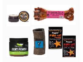 1Treat your dog with this package full of products from The Blissful Dog and Diggin' Your Dog . Your furry friend will enjoy an organic air dried bone, a jumbo buffalo horn chew, joint supplements, and two digestive supplements. Bonus- keep their paws soft with rad pad balm!