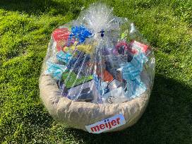 Spoil your furry friend with a Meijer curated dog gift basket including a cozy dog bed full to the brim of awesome goodies!