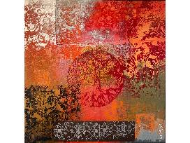 Elisa's style is characterized by a striking use of color, acrylic paint and the technique of applying self-made screen prints on canvas. One can read her paintings as an "archeology" of layered shapes and patterns that represent her global heritage. Elisa Lejuez finds her inspiration in the symbolism of everyday life and incorporates images of these multicultural aspects and eclecticism in her work.
