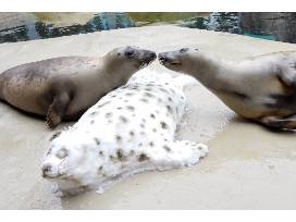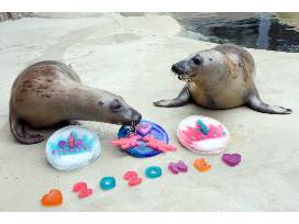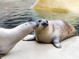 Peanut was born January 9, 2020 and Celia was born the very next day, January 10, 2020. Since then, the grey seal pals have spent time getting to know their animal care staff and mastering skills like presenting their flippers. The two love snacking on fish, and a favorite treat of theirs is flavorless gelatin. They love lounging in the sun in their home in Pinniped Point, and taking frequent dips in the water to cool off.