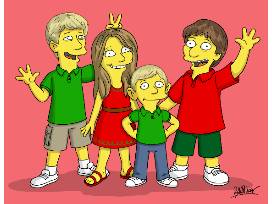 A special family illustration drawn in the style of a (wink, wink) VERY famous cartoon family.