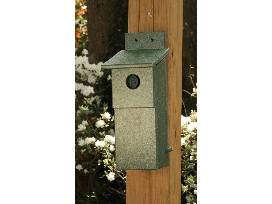 - A ventilation slot beneath the sloped roof to help prevent birds from overheating.