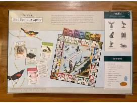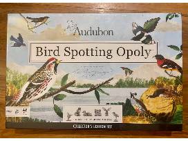 Grab your binoculars and get ready to spot the colorfully painted birds of John James Audubon, the famous lover and observer of birds, with Audubon-Opoly! Play on a nature-themed game board to collect Audubon's most iconic North American species. This game comes with 6 customer pewter pieces, 22 Audubon Property Cards, 4 Seasons Cards, 2 Gear Cards, 16 Field Guide Cards, 16 Birder's Journal Cards, a packet of money, 32 eggs, 12 nests, 2 dice, and game instructions. Each of the cards comes with unique trivia. Collect the most bird-sightings to win!