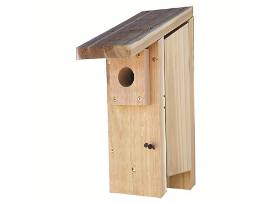 Has a 1-1/2in entrance hole. Quality feeder, hand made entirely with 7/8in thick Western Red Cedar, making them naturally well insulated. Each house is assembled with stainless steel and dichromate plated hardware. Features easy clean out, side or front opening with predator guard. Made with pride in Michigan.