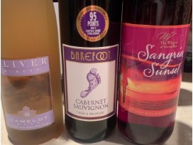 9bottlesof wine - cannonball Cabaret Sauvignon, Buckeye Blush wine, Cabaret Sauvignon Lindeman's wine, Oliver winery Camelot, Sangria sunset, Apothic red Rose, Languna ranch Chardonnay wine - so many different kinds and types.