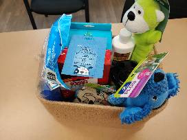 $25 Gift Card to PetSmart, Milkbone Dog Treats, Blue Buffalo Dog Treats, Assorted Dog Toys, Calming Collar, and travel doggie bags