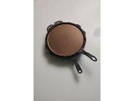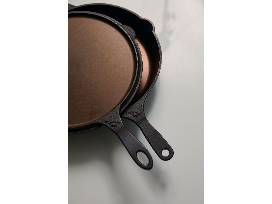 The No. 12 Combo Set: A perfect pair of cast iron cookware for any home. Comprised of our quintessential No. 12 skillet and our No. 12 flat top griddle, both compliment one another yet also serve their own unique applications in the kitchen. The No. 12 flat top is designed as a custom fit lid to sit atop your No. 12 skillet, but also functions as a daily use griddle. An exceptional gift for anyone from the newlywed to the most discerning chef, these skillets are destined to be modern heirlooms in any home. Use them well.