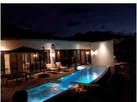 Puesta del Sol is a vacation rental home that will amaze you. It sits at the end of an adventure-lover's drive up a hill that overlooks all of Tamarindo, and offers a 300 degree panoramic view of Tamarindo Bay and the rolling green hills of Guanacaste as they fade into the distance. An exhilarating ocean breeze through Puesta del Sol adding to the amazement, creating the sensation of floating in the sky. Enormous windows throughout all parts of this property make nature's scenery the most artwork, and allow you uninterrupted enjoyment of the tropical surroundings during your vacation.