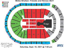 2 tickets to see Blake Shelton's "Friends and Heroes" tour on Saturday September 18th at 7:00 pm at the Gas South Arena (formerly the Infinite Energy). The seats are located in Section 106 row G.