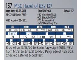 Bred AI on 12/18/20 to Basin Payweight 1682. PE'd from 1/1/21 to 3/18/21 to MSC Paygrade of 455 803..
