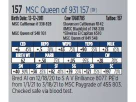 Bred AI on 12/18/20 to S A V Brilliance 8077. PE'd from 1/1/21 to 3/18/21 to MSC Paygrade of 455 803..