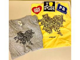 'Burgh Prahd goodies from Commonwealth Press, including a custom designed, printed Pittsburgh t-shirt (size youth L), a Pittsburgh tote and PGH/yinzer stickers.