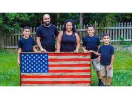 An American flag made by Army veteran Josh Tredinnick. Josh was severely wounded in Afghanistan serving in the 10th Mountain Division of the Army. He, along with his family, now operate their flag making business. Can be displayed indoors or outside. 51 X 28"