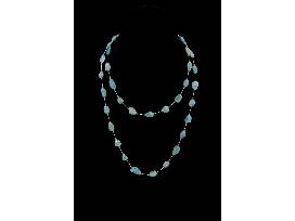 "Larissa" - Larimar, White Topaz, Silk Knotting - 38" Larimar is only found in the Dominican Republic. Created by Karen Bresolin, Solace is jewelry with natural stones and all their imperfections. Each piece is "named" and unique.