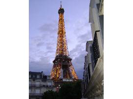 The apartment has two bedrooms and two full bathrooms, plus a living room, dining room, kitchen, and small office. Both bedrooms have balconies with wonderful views of the Eiffel Tower. The apartment is accessible by elevator, completely renovated and is equipped with wireless internet, cable TV, portable air conditioning units and a washer and dryer.