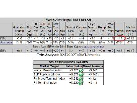 MIKU MAESTRO Q15 (MAXFQ15) is a rare find. He offers excellent genetics with leading Marble Score at 1.9 in the top 4%. He is genetic condition free son of his sire, Mayura's Itoshigenami Junior (ADBFA0139).He offers a genetic package that combines the world class proven marbling and carcass abilities of his sire combined with the exceptional growth genetics of his going very deep into the dam line. This leading bull sits comfortably in the top 1% for the four selection breed indexes for WBI, SRI, FTI, and F1IMAESTRO's sire, Itoshigenami Jnr is well recognized worldwide as the leading marbling Wagyu bull with breeding values supported by extensive carcass records. With 1,997 registered progeny and proven ability Carcass Wt of +25kg (98% acc), Eye Muscle Area of +7.7 (97% acc), Marble Score of +3.2 (97% acc)and Marble Fineness of +0.47 (91% accuracy).MAESTRO's dam (BDWFB1077) is a very impressive animal with superior growth and female traits. She offers a 600dWt of +67kg, Mature Cow Wt of 58kg, Milk of+10, Carcass Wt of +57kg and Retail Beef Yield of +1.9.She has38 registered progeny. Her EBVs are also very similar to that of her dam's (also a Macqaurie bred cowBDWFZ0561also with 38 registered progeny).Z0561 has a 600dWt at +63kg, MatCowWt at+71kg, Milk of +5, CarcWt at +56 kg and Retail Beef Yield of +1.6.B1077 herself is sired by Macquarie's renowned Y408 (BDWFY0408), a proven carcass sire with 343 registered progeny and highly reliable breeding values for Gestation Length at -3.4 (86 % acc), Milk +4 (90% acc), Retail Beef Yield at +1.5 (81% acc), and Marble Score of 2.1 (90% acc).MAESTRO's dam line also incorporates Itozurudoi TF151 (IMUFLTF151) as maternal sire. MIKU MAESTRO (MAXFQ15) isa top 1% Wagyu bull with an exceptional blend ofthe world leading marbling and carcass credentials of Mayura Itoshigenami Jnr and the very deep growth and female genetics embedded in the quality pedigree of his dam. He offers a Carcass Wt of +44, Marble Score of +1.9, a WBI of +$277, a SRI of $276 and a FTI of +242. His genetics is used in carcass producing programs in Australia, the EU and the UK. Figure 1 -Sire of MAXFQ15, Mayura Itoshigenami Jnr