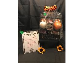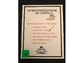 2 lbs. Starbucks coffee, 1 lb. Pumpkin Spice coffee, mug rack and serving tray, 4 inspired coffee mugs, Witches Brew candle biscotti treats