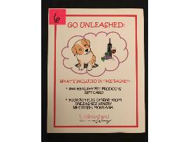 $100 Healthy Pet gift card along with Unleashed Wine; Good Catch Pinot Grigio, Tail Wag Pinot Noir, Lazy Day Rose & Huckle Beary Huckleberry Pinot Noir