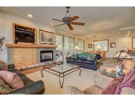 Up the stairs, you will find the main floor with an open layout that includes the fully stocked kitchen looking over to the dining and living area. There is plenty of seating for everyone to be comfortable and a fireplace to warm you up with a ceiling fan to cool you down as well. The full bathroom on this floor is great, as this is the floor where most of the entertaining will happen especially with the flat screen TV and private deck! The private deck off this level is great for coffee in the morning, lunch with everyone, or a cocktail or dinner at night.
