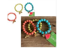 THREE PIECE STONE BRACELETS WITH CHARM AND TASSLE ACCENTS