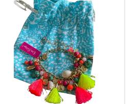 ONE LILLY PULITZER GOLD CHARM BRACELET WITH LILLY JEWELRY BAG
