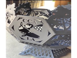Light up your outdoor area with this custom made fire bowl. This HMA Fire Bowl measure 36" wide and 22" tall and is cut out of 3/16" steel. This bowl features the new Savannah pattern, showcasing oak trees dtripping in moss. All panels have been custom designed for CCA Louisiana with the logo as the centerpiece. Donated by Hard Metal Advantage, LLC.
