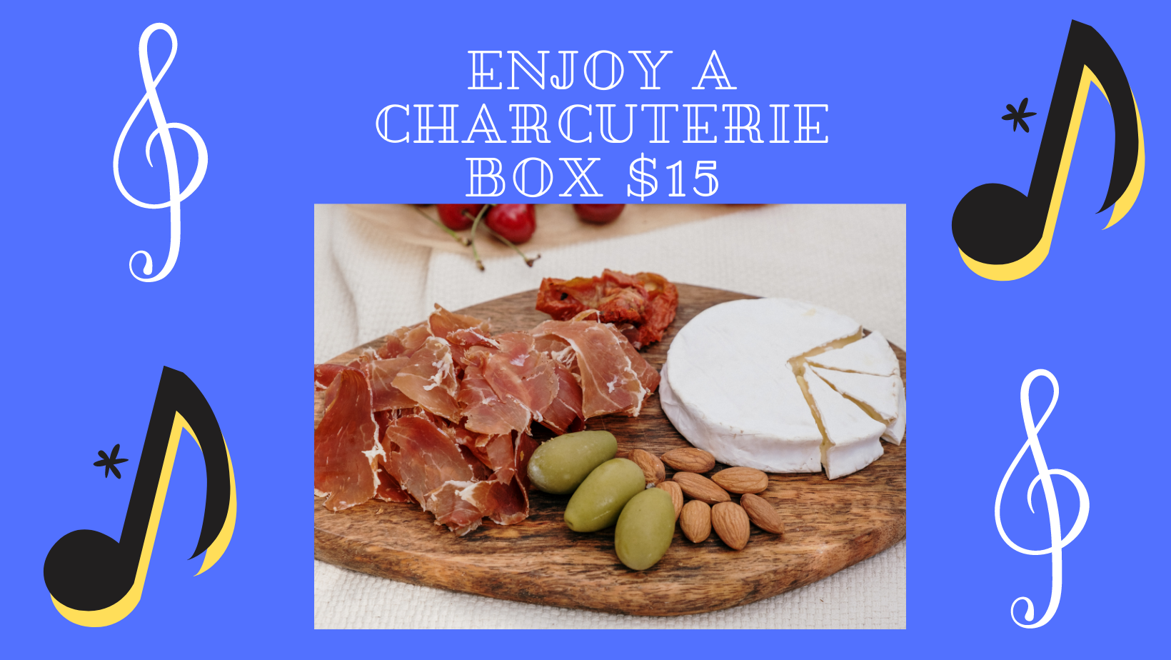 Enjoy a charcuterie box for an addition $15 (only 30 available...don't miss out)