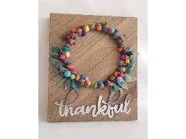 Be Thankful ! Enjoy this seasonal wall hanging with needle felted acorns (with real acorn caps!). Perfect accent for your Thanksgiving with family. Handmade in Canada, it measures 10 X 12 inches and is ready for hanging.