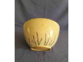 Enhance any table setting with this beautifully made, large bowl by Strasburg potter Barbarah Robertson. It is decorated with lavender flowers and measures 8.5 inches in diameter and is 5 inches high. Value $60.