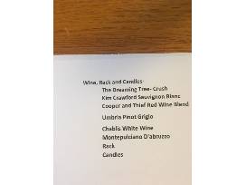 6 bottle wine rack stocked with 6 bottles of wine and 2 candles. See the picture for a detailed list of the wines