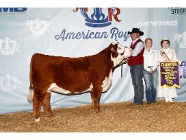 8127 is a producer and is a ranch favorite for our visitors. Her granddam, Gabriel, has rewritten Herford history for the Barber program. We couldn't be more excited about the future of 8127, as her 2021 ET calves are stellar. United was the easy crowd favorite at Oklahoma City and the calf reports have been very positive. This mating is loaded with potential with a lot of the breed's great ones in the same pedigree.