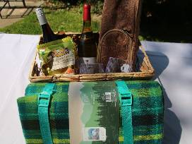 Spring is here and summer is coming! It's the perfect time for a picnic (weather permitting, of course). This basket has everything you need for an afternoon for two: cushioned waterproof outdoor picnic blanket, a bottle of red and a bottle of white wine, $100 GC to Country Deli, two dishwasher safe + shatterproof stemless glasses, a wine shoulder bag, rosemary crackers. FSTG sweet potato chips, and of course, the basket.