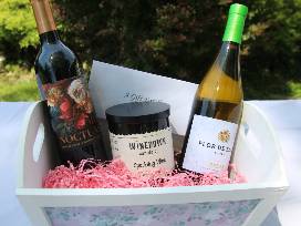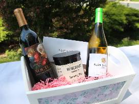 Was there ever a more classic pairing than wine and cheese? Basket includes two bottles of Spanish wine (Musa Noctuaria tempranillo y garnacha blend and Flor de Sara viura rioja), a $50 gift certificate to The Cheese Company in Narberth, and Winedown Candle Co. sparkling wine scented candle. Musa Noctuario pairs well with aged cheeses and Flor de Sara pairs well with soft cheeses!