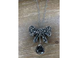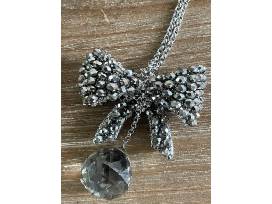 One Theia long marcasite adorned bow with crystal drop statement necklace