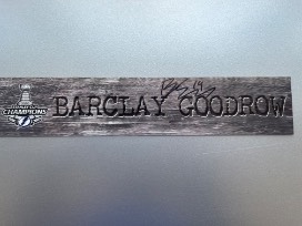 #19 Barclay Goodrow signed Lightning Opening Night locker room name plate. Name plate was displayed in Lightning locker room on Opening Night of the 2020-21 season on January 13, 2021.