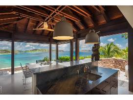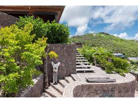 From its western facing perch on the hillside in Pointe Milou, this two-bedroom retreat offers a panoramic view of the Atlantic Coast of St. Bart. In the distance, the island of St. Maarten, like a mystery, glimmers on the horizon. But it's the villa's combination of hardwoods, stone, and artworks that work with the scenery to make St. Barth Chic the perfect tropical getaway.