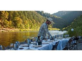 1Experience true glamping in this cabin built from native logs in 1938 and completely updated in 2014 to pristine conditions. The cabin is built directly over a clear mountain stream and is visible through the glass floor of the master bedroom for an authentic experience. Depending on your travel season your group will enjoy a white water rafting trip on Browns Canyon National Monument or a picturesque horse-drawn sleigh ride up Peak 9 Both seasons also include a gold mine tour complete with a gold panning experience.