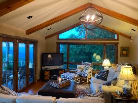 4 bedrooms, 3 baths amply accommodate 8 friends & family (master on main King, 2 Queen bedrooms, 2 twins). Spread out in a vaulted ceiling living room, gourmet kitchen, 2 gas fireplaces, dining room, game room, media/bunk room & private office. Stretch out on cozy furniture on two long porches that span both stories of the magnificent view.