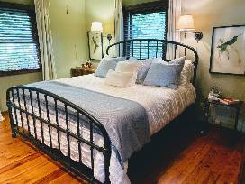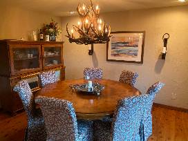 The kitchen is fully equipped with all appliances and utensils you will need. Dining room has a gorgeous round table that seats 8 comfortably. Charcoal and gas grills available.